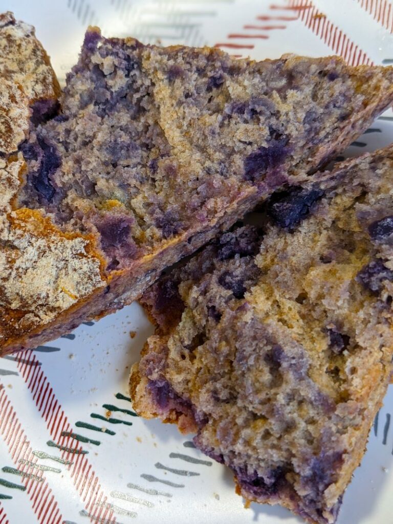 I like to prepare the ingredients and cook the Okinawan sweet potato the night before I plan to bake. That way in the morning I just add the wet ingredients to the dry while the oven is preheating. While it’s baking, I can clean up and get ready for the day before a warm breakfast.